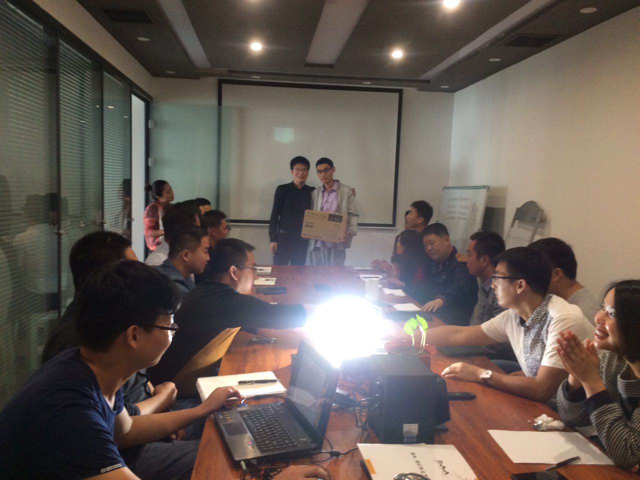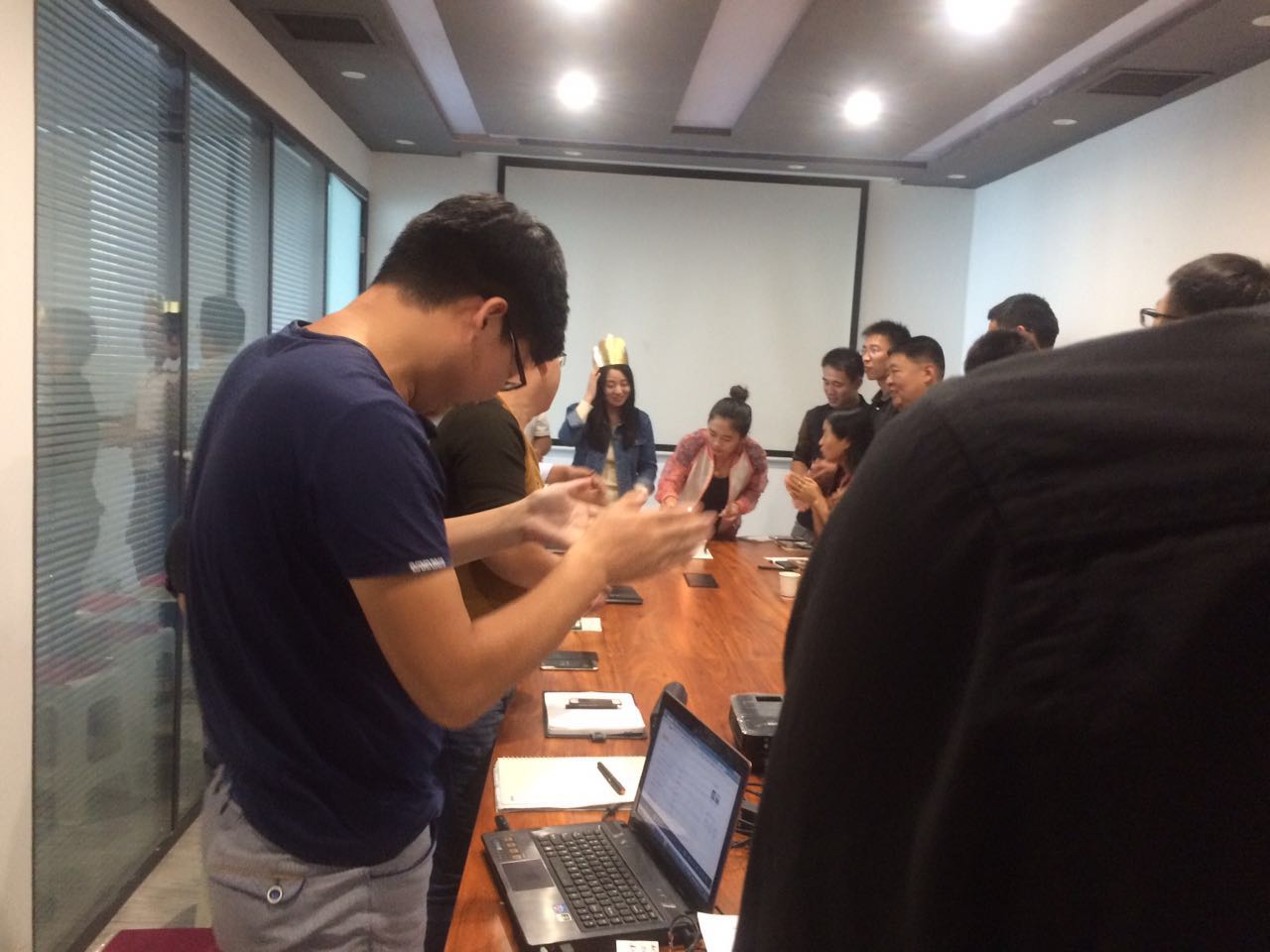 大家为非凡员工唱生日快乐歌,希望她能够在工作的同时也能保持身心的愉悦!